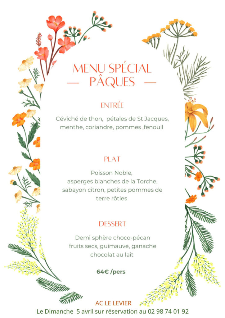Besoin d'infos ou de réserver ? Retrouvez le contact et le téléphone d'AC Le Levier à Loctudy et Pont-L'Abbé. Cuisine maison et locale autour de la mer.
